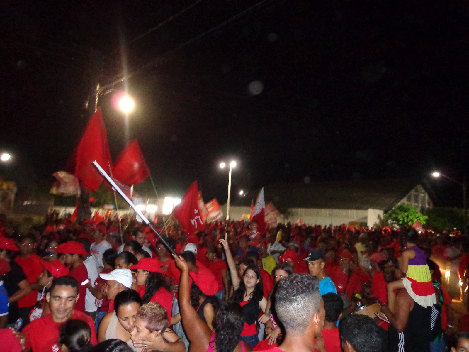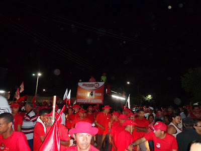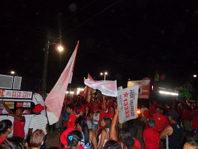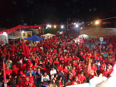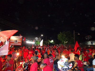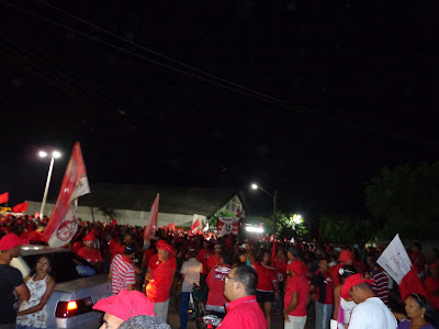 Ontem (23) foi realizada mais uma imensa caminhada com destino o bairro da Pituba no se realizou um grande comício. Com concentração ao lado do ginásio de esporte o “Wilsão” o povo começou a chegar por volta das 17h00 e logo tomou conta da praça transformada o local em um grande lençol vermelho.