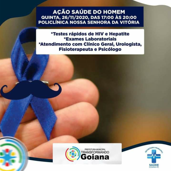 Novembro Azul em Goiana Ação Saúde do Homem gratuito. Quinta,26/11/2020